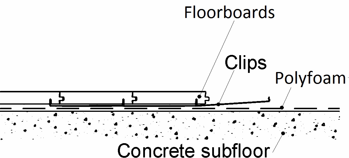Floating floor structures provide good conditions for thermal insulation with an intermediate layer of polystyrene. The subfloor for polystyrene can be of concrete or wooden materials. See section 9 "Moisture protection".