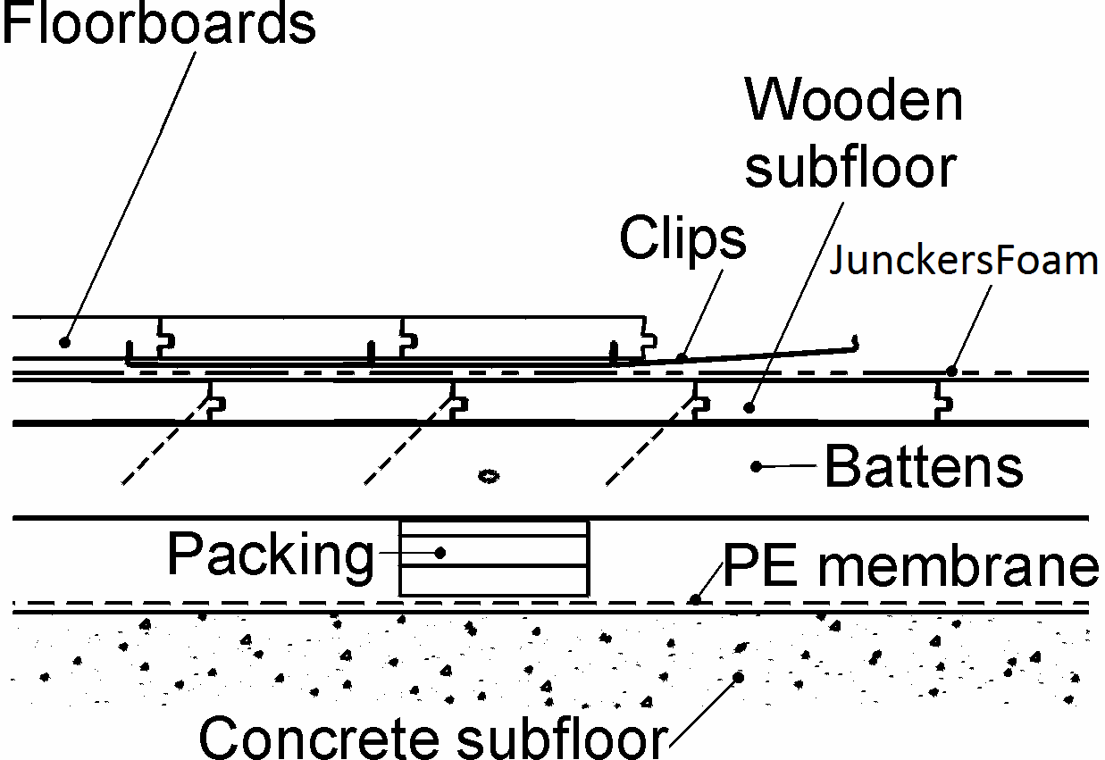 On wood based subfloors Junckers Foam is used as an intermediate layer with close fitting joints.