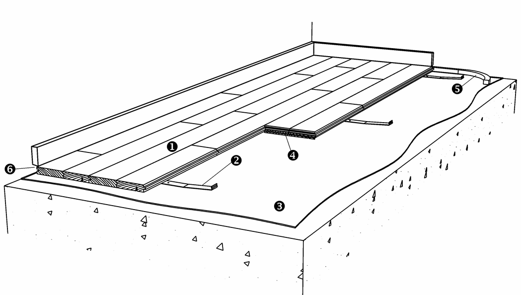 If several types of subfloors make up the same floorspace, the subfloor must be of uniform elasticity and flatness, to ensure that the final floor is uniform.