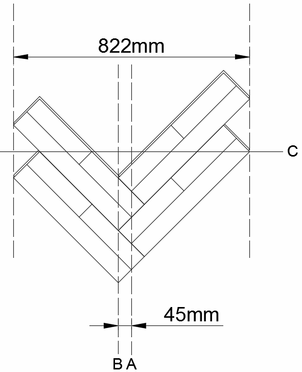 45 mm (1 3/4" ) left of the centre line (A), a working line with a string or chalk line (line B) is drawn.