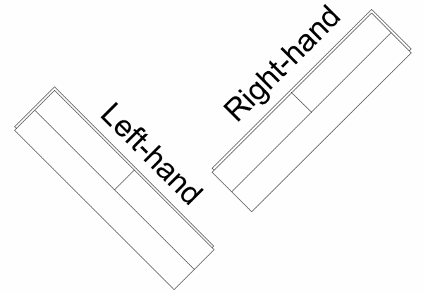 This document describes installation of the staves in a herringbone pattern. However the staves are delivered as right and left handed. Therefore only imagination sets a limit for choice of pattern. See the difference between a left and right handed stave in figure 2.