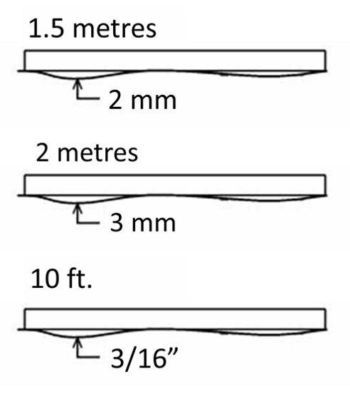 Deviations are measured as gaps under the straight edge. The surface must be smooth. Any irregularities must be corrected by grinding or by using a self levelling compound.