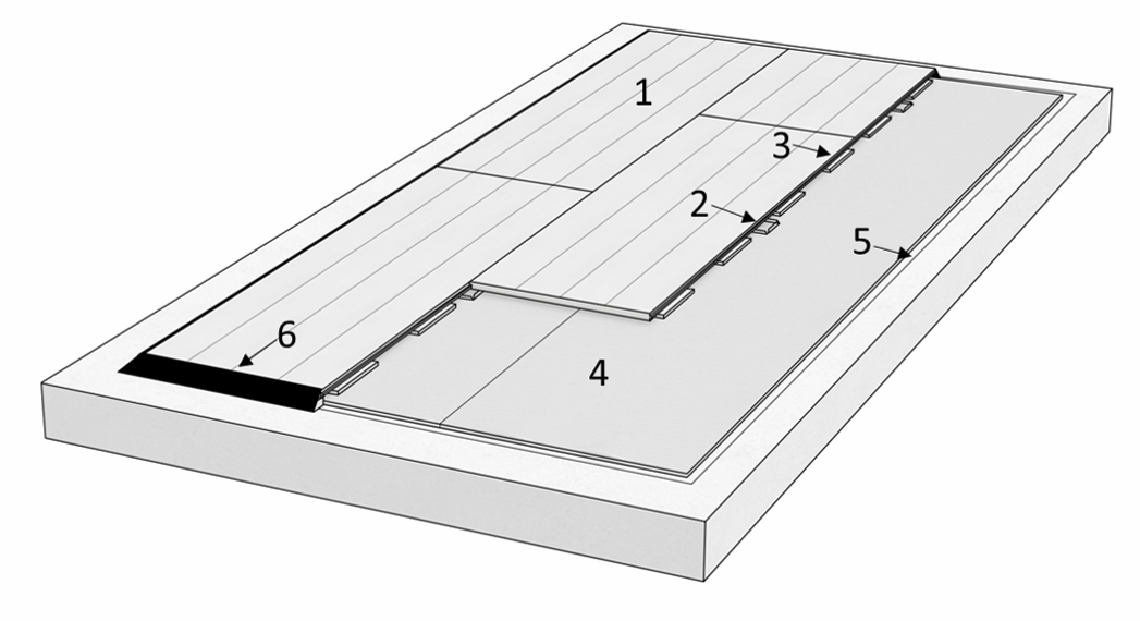 All the panels should be numbered on the back side or on the metal bracket, to ensure that they are correctly placed each time the floor is laid, so that line markings, etc. are aligned.