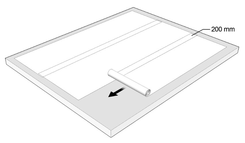 The moisture barrier is laid with an overlap of 200 mm (7 7/8") at all joints. The polythene has to be taped at all lap joints using a tape 50 mm (1 15/16") wide.