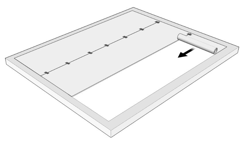 Junckers Sportsfoam mat is laid parallel to the laying direction of the panels with joints fully closed and taped in place.