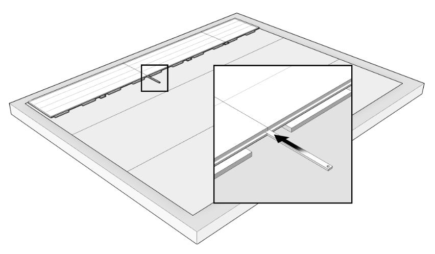 The first row of panels is laid in a straight line with the metal bracket pointing in the laying direction.