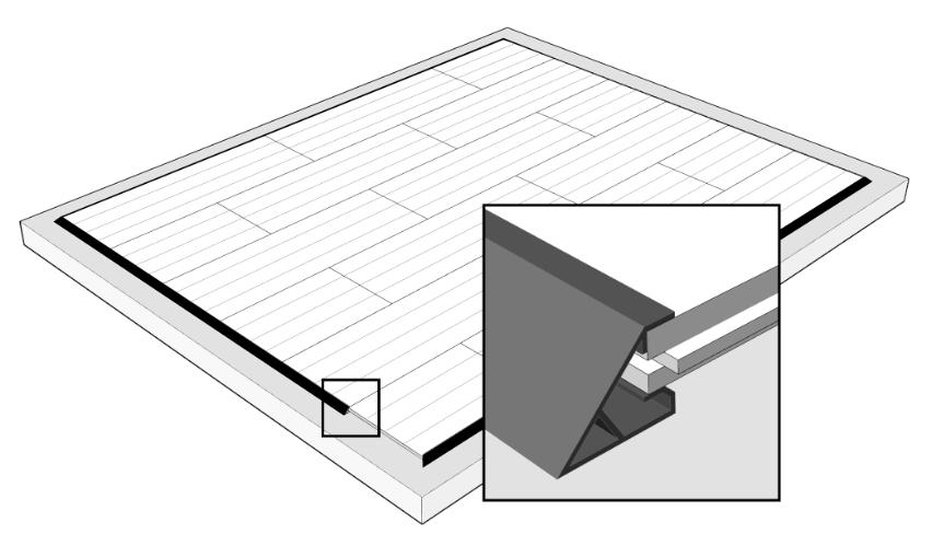 A transition ramp around the floor provides a strong, protective and firm edge to the perimeter.