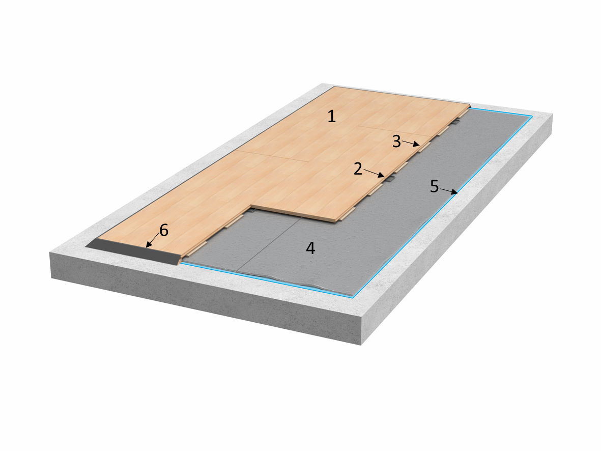 每块地板下面都装有四块 12 毫米厚的桦木胶合板。这些胶合板使得地板强度更高且更耐用。地板两端使用铝型材进行加固。地板安装在 15 毫米厚的聚氨酯泡沫层顶部,具有适当的减震和弹性。