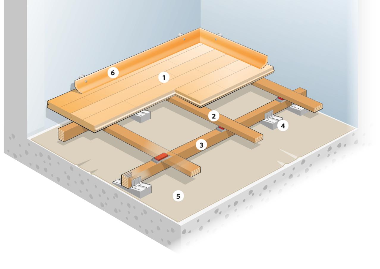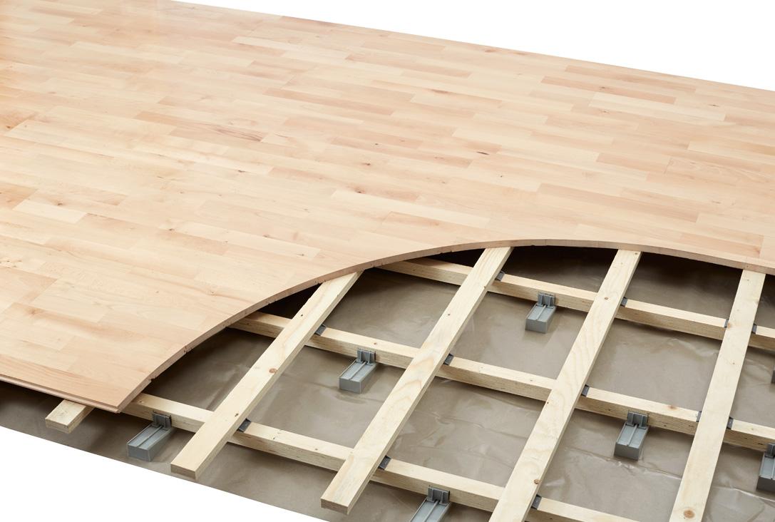 DuoBat 120+ 系统具有卓越性能和极高的安全性,以及几乎无限的平整灵活性,以此适应所有类型的不平整底层地板。将 22 毫米厚的实心硬木地板固定在由 2 层工程板条(交叉铺设)组成的底层地板系统上。