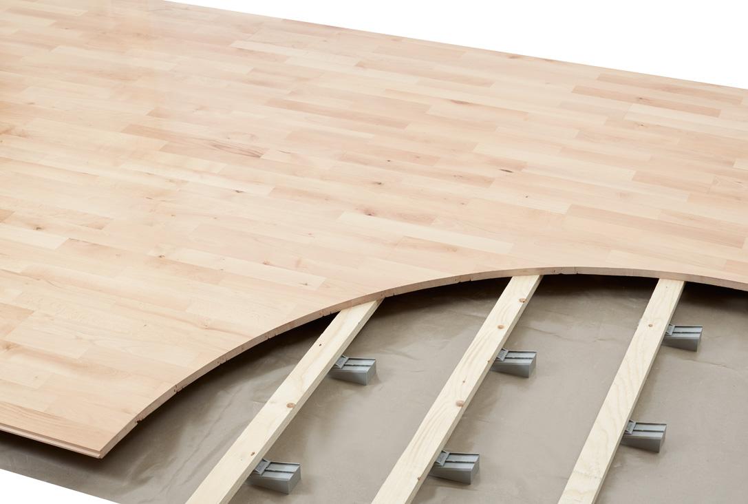 DuoBat 62+ 系统具有卓越的性能和安全性,同时还能适应所有类型的不规则底层地板。22 毫米厚的实心硬木地板被固定到由一层工程板条(带预装减震橡胶垫)组成的底层地板系统上。